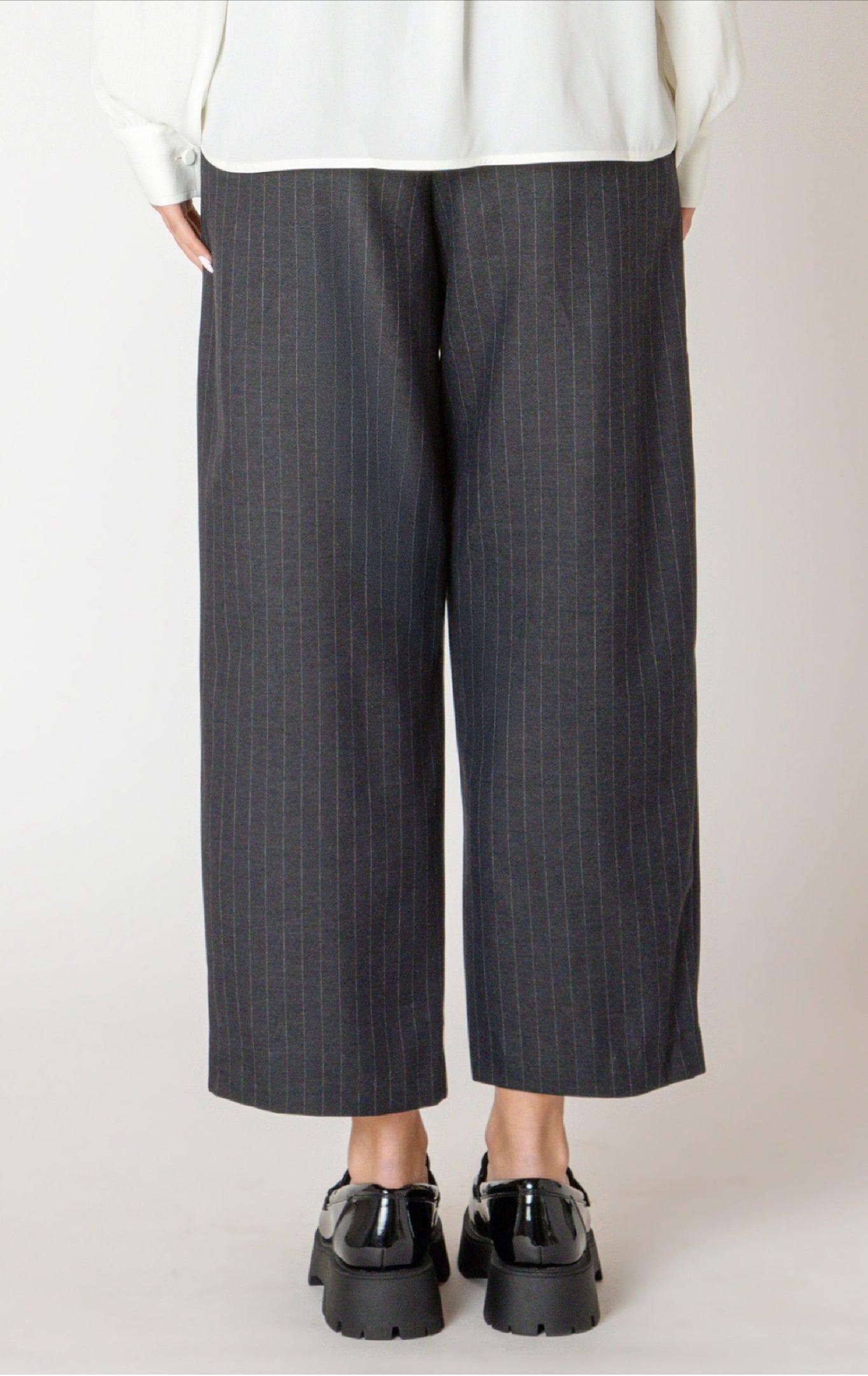 Expertly crafted for a timeless and stylish look, the Black Tape Wide Leg Stripe Pant features a chic black pinstripe design and a flattering wide leg cut. The button hem adds a touch of sophistication, while the slightly longer inseam provides a perfect fit.