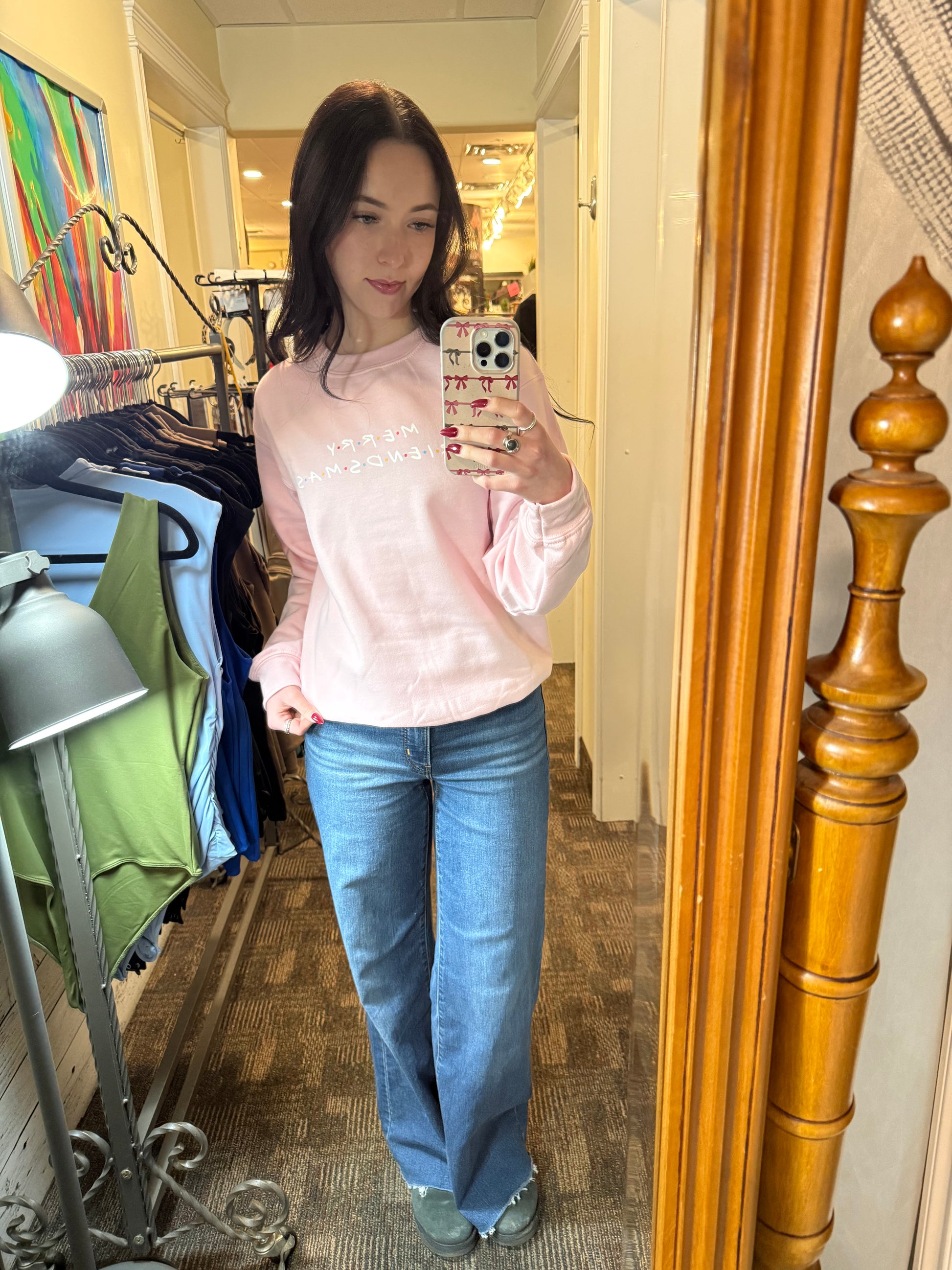 Blonde Ambition Merry Friendsmas Crewneck Pink