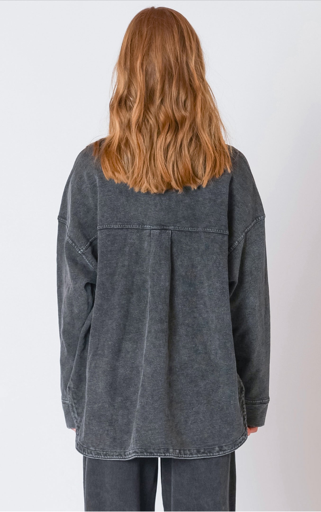 The Dex Washed Denim Shirt Jacket is a versatile layering piece for the fall season. With its color washed black design and silver hardware, this button-up shirt jacket is perfect for adding an edge to any outfit. Made of cotton and polyester, it's a comfortable and stylish addition to your wardrobe. Part of the Fall 2025 collection.