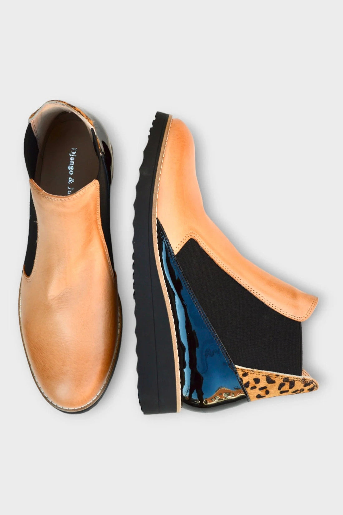 Step up your style game with the Django & Juliette Osiel leather ankle boot. Featuring patent leather and animal print accents, this boot adds a touch of edgy sophistication to any outfit.