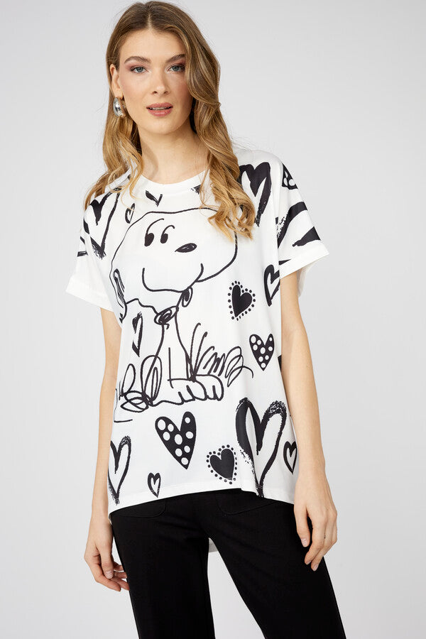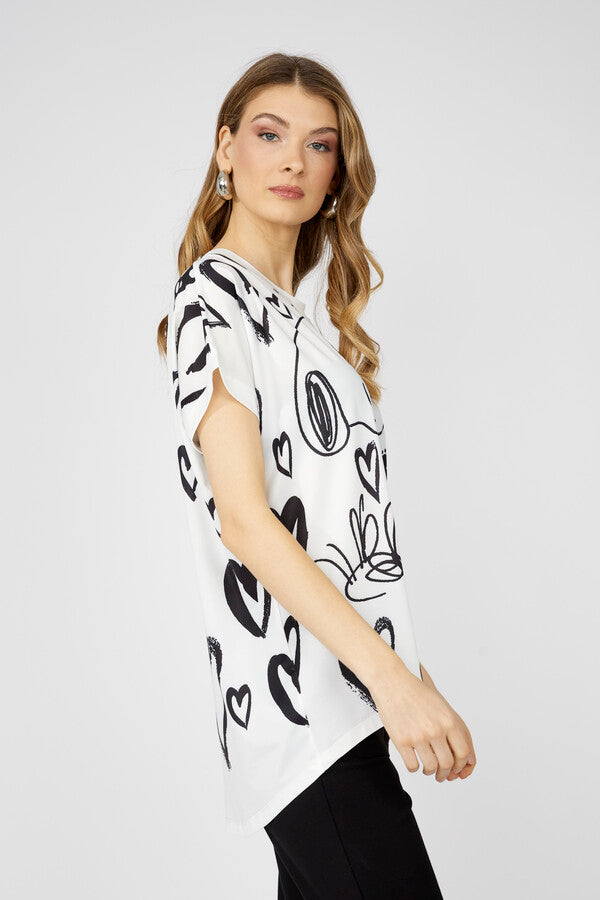 Upgrade your wardrobe with the Frank Lyman pullover, a perfect blend of casual and playful style. This hip-length, regular fit top features a vibrant graphic print with hearts and cartoon designs, making it ideal for summer occasions. Its crew neck and short, straight sleeves ensure comfort and ease, while adding a touch of fun to your everyday look.