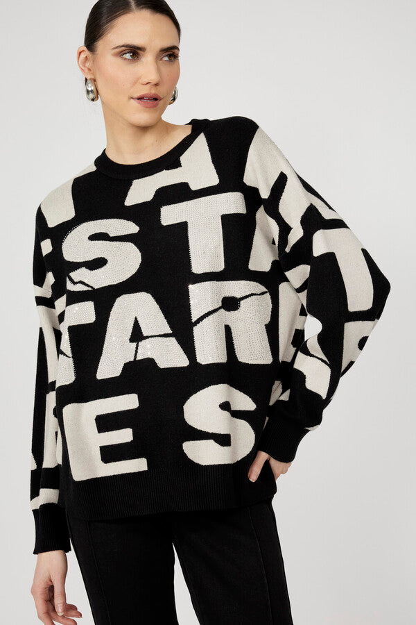 Upgrade your wardrobe with the Frank Lyman pullover, designed for both casual and office settings. This hip-length, oversized fit features a crew neck and straight long sleeves, making it perfect for any urban style. The embroidered graphic design adds a unique touch, while the text-print pattern enhances its trendy appeal. Ideal for those seeking comfort without compromising on style.