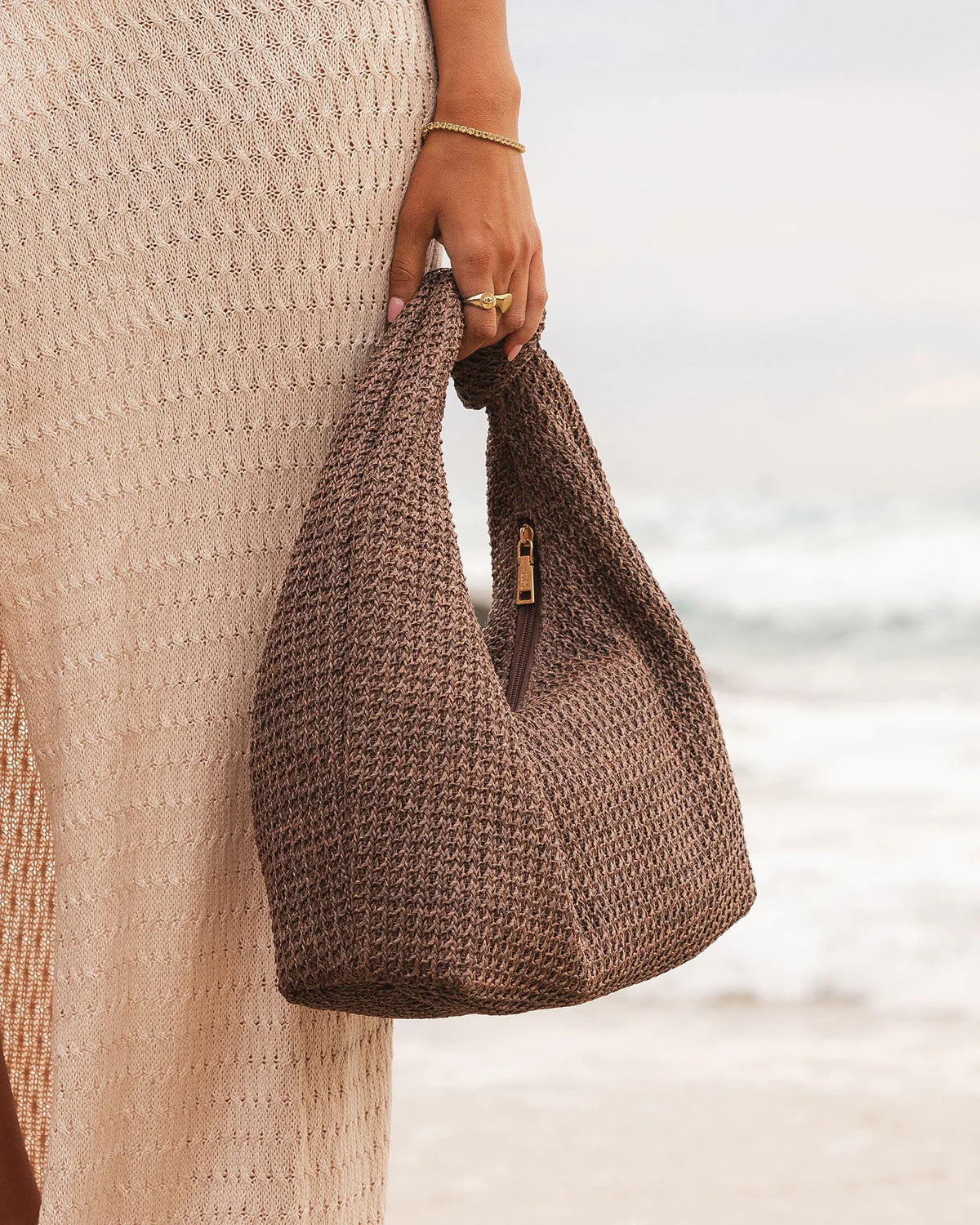 The Louenhide Bahama Chocolate Shoulder Bag will keep you looking put together as you seamlessly transition from beachside to brunch. Where the rich texture of raffia meets a subtle metallic thread woven throughout, this slouchy shoulder bag exudes an effortless charm. The shoulder straps distinctive knot detailing further elevates its unique form, while enhancing your summer style appeal. Embracing the allure of a soft structure, this women’s textured shoulder bag offers both comfort and style for those laid-back summer days. Make Bahama Natural the cornerstone of your seasonal wardrobe and revel in the compliments that are sure to follow!
