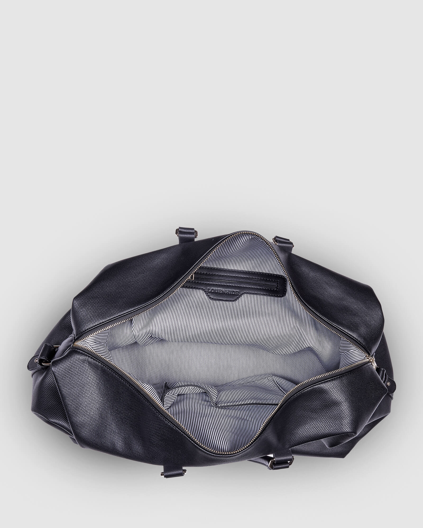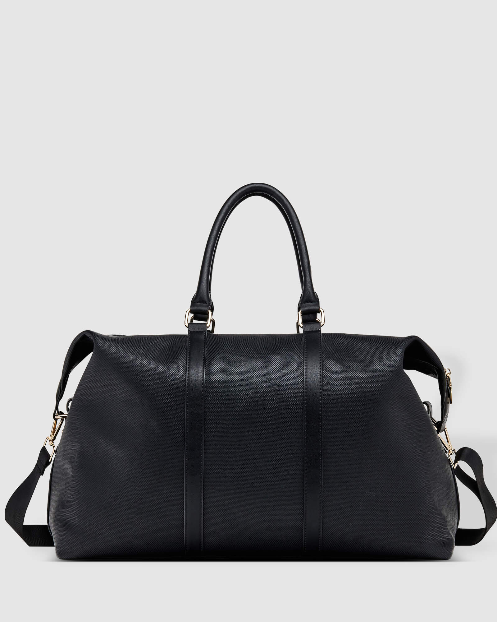 The Louenhide Boston Travel Bag is a gorgeous carryall for overnight travel and weekends away. Finished in luxurious, textured vegan leather, this weekender bag features a wide opening, multiple internal pockets, and a backside zip pocket. Carry the Boston effortlessly by the top handles, or wear on your shoulder with the detachable sateen webbing extension strap for added comfort.