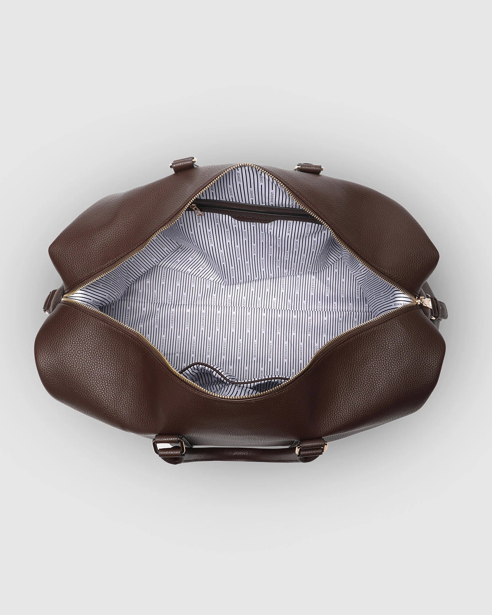 The Louenhide Boston Travel Bag is a gorgeous carryall for overnight travel and weekends away. Finished in luxurious, textured vegan leather, this weekender bag features a wide opening, multiple internal pockets, and a backside zip pocket. Carry the Boston effortlessly by the top handles, or wear on your shoulder with the detachable sateen webbing extension strap for added comfort.