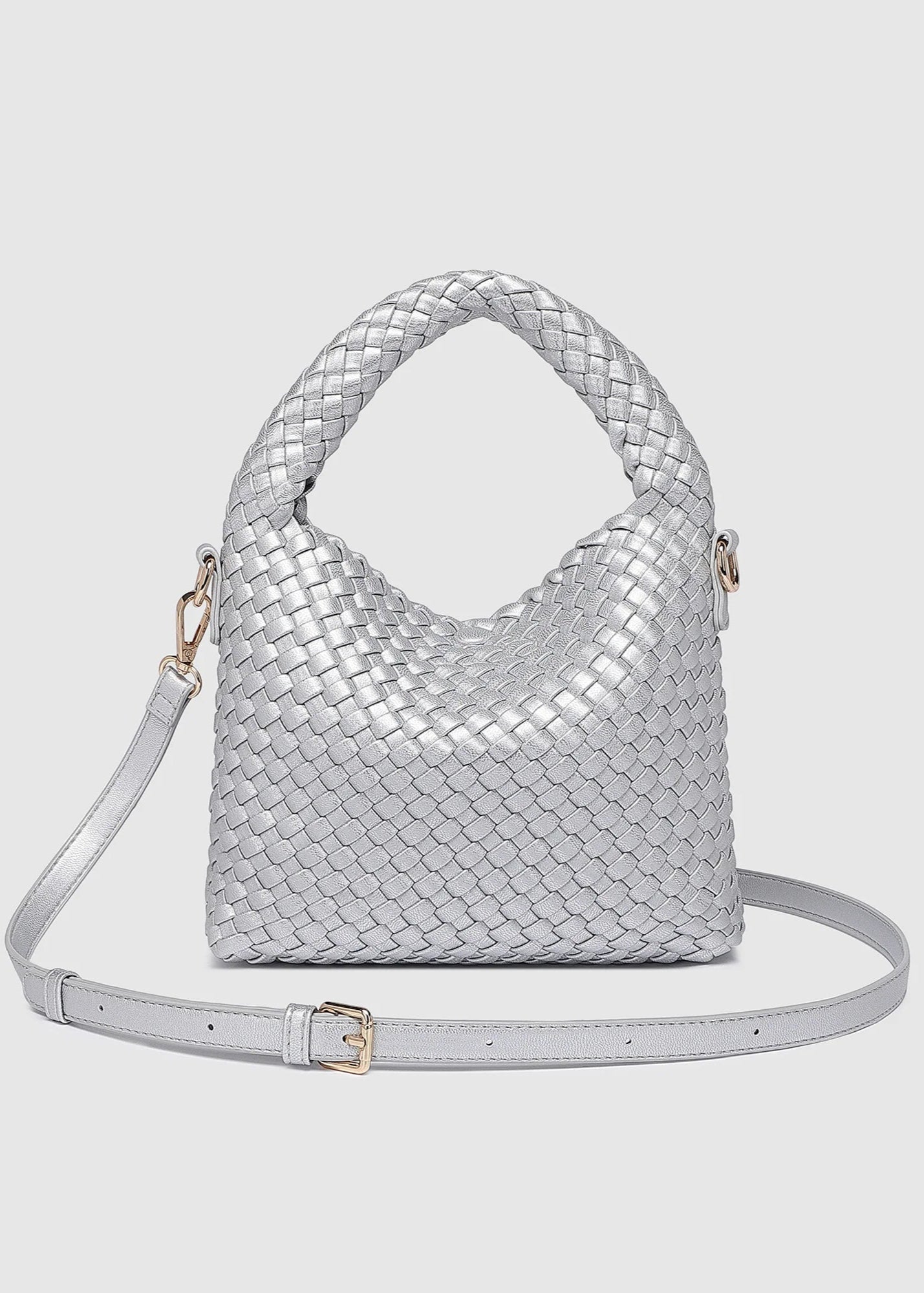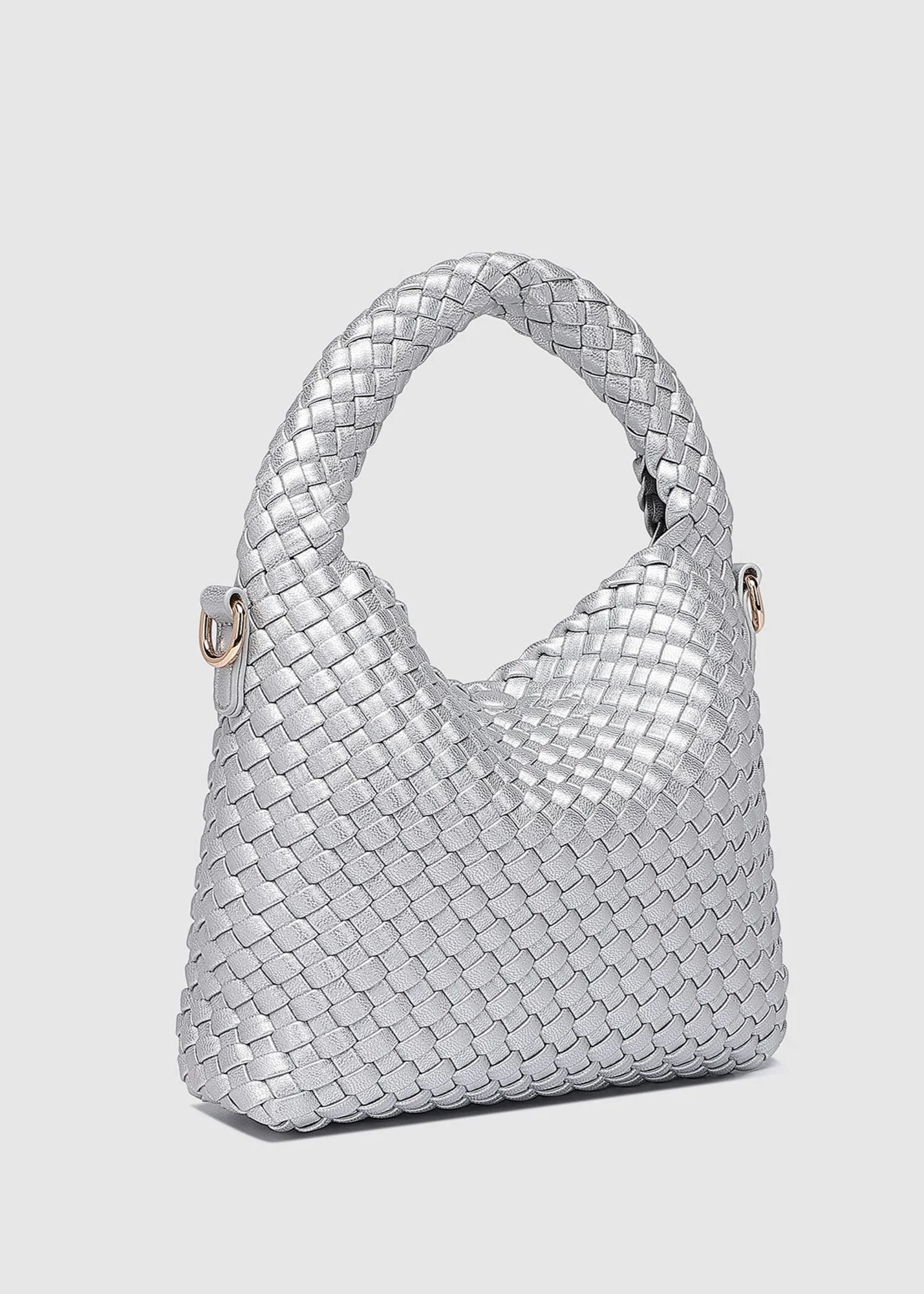 The Louenhide Gabby Silver Mini Crossbody Bag brings a fresh perspective to summer accessorising. To elevate a past season favourite, The Gabby, this women’s soft mini handbag will add the perfect touch of texture to your capsule wardrobe. It’s all about versatility, with its detachable extension strap to easily transition from a top handle carry to a classic crossbody, adapting to your style needs with ease. Whether you’re exploring a new city or enjoying a leisurely seaside stroll, this women’s mini woven crossbody bag moves with you. Made with enough space to carry your essentials while maintaining its sleek profile — the Gabby Mini is an ideal choice for any warm-weather adventure.
