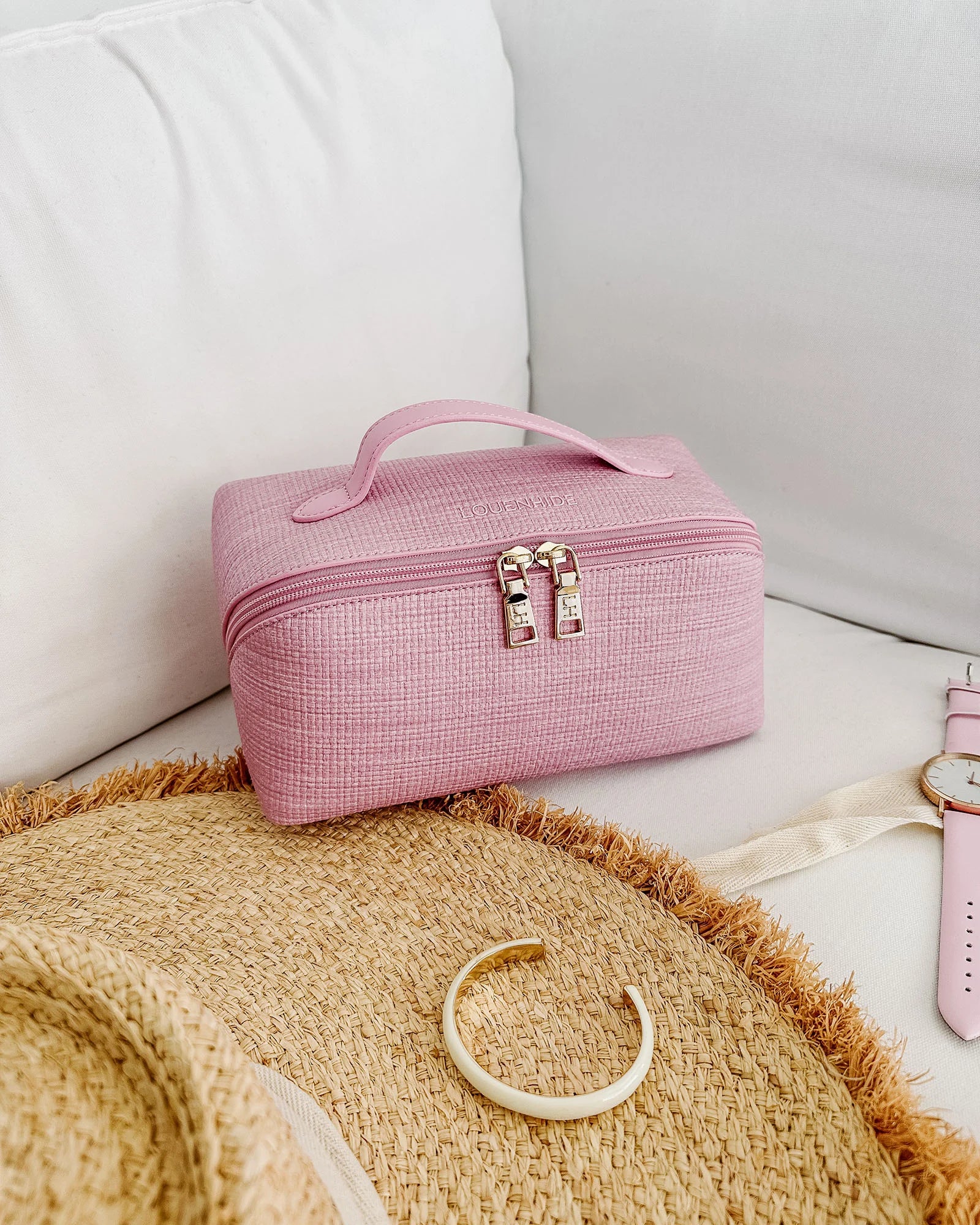 The Louenhide Mary Cosmetic Bag was designed with ultimate convenience and organization in mind. No more digging around or struggling to find what you need, with its wide opening and unique silhouette, this women's cosmetic case opens to lie completely flat on any counter, giving you easy access to all your beauty essentials at once. Featuring 2 main compartments, 1 zip pocket and 3 slip pockets, this travel toiletry bag ensures each item has a its designated spot. Whether you're a jetsetter, or simply seeking a well-organized solution for your beauty essentials, this makeup bag is the answer to all your needs. |
