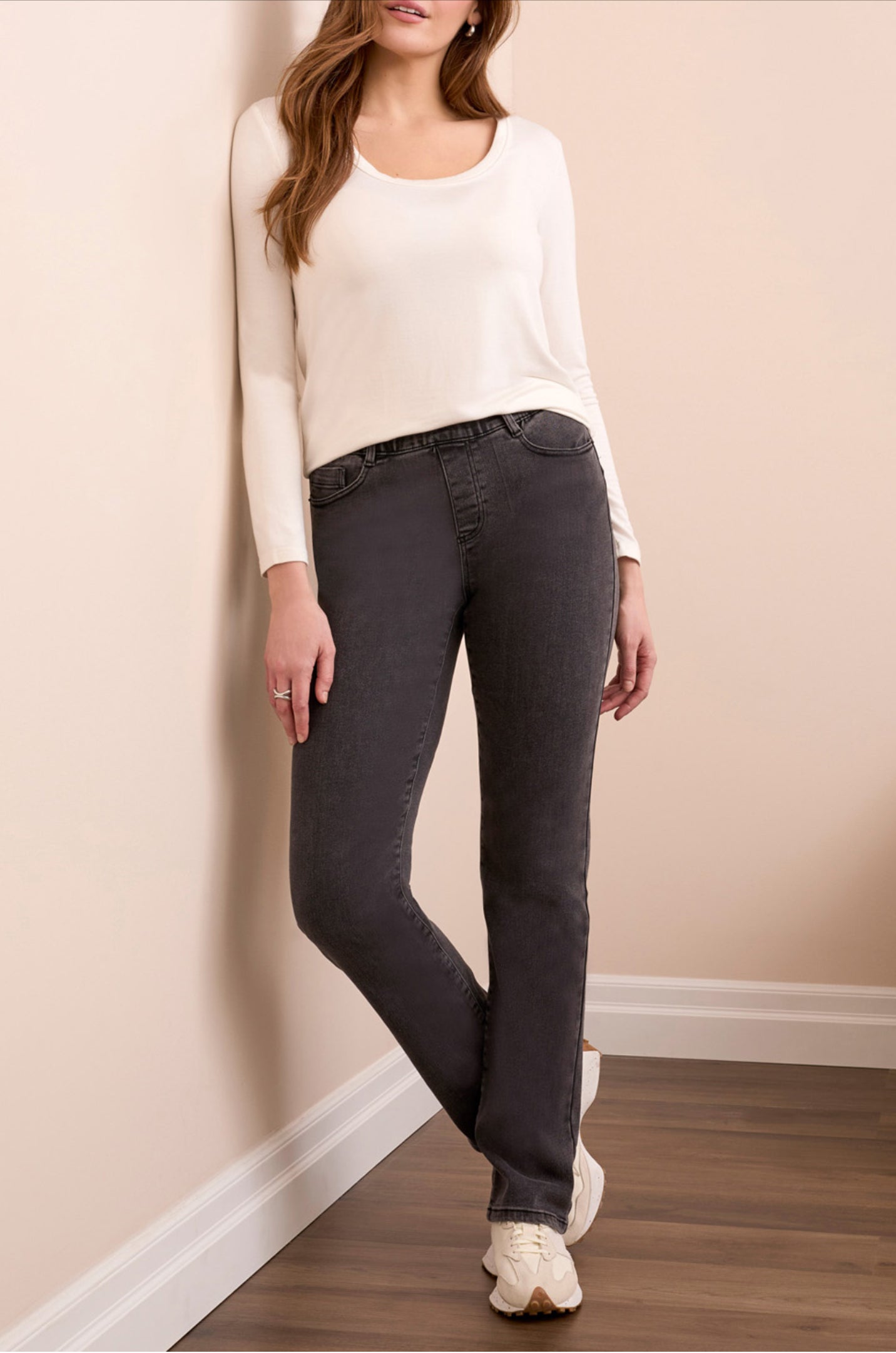 Tribal Sophia Pull On Straight Leg Jeans Charcoal