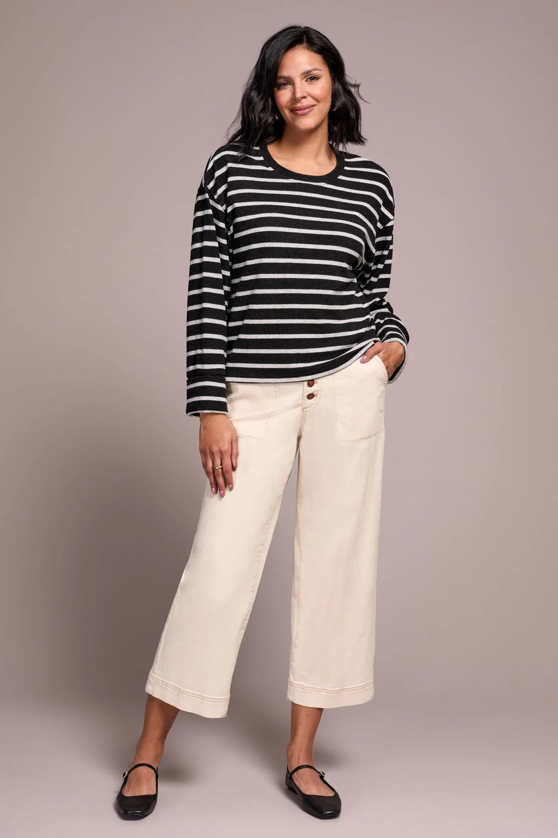 Step into ultimate comfort with this cozy brushed knit top, featuring a timeless striped pattern with a hint of nautical charm. The ultra-soft fabric makes it a perfect everyday favorite, while a classic crew neckline and cuffed sleeves complete the look with effortless ease.