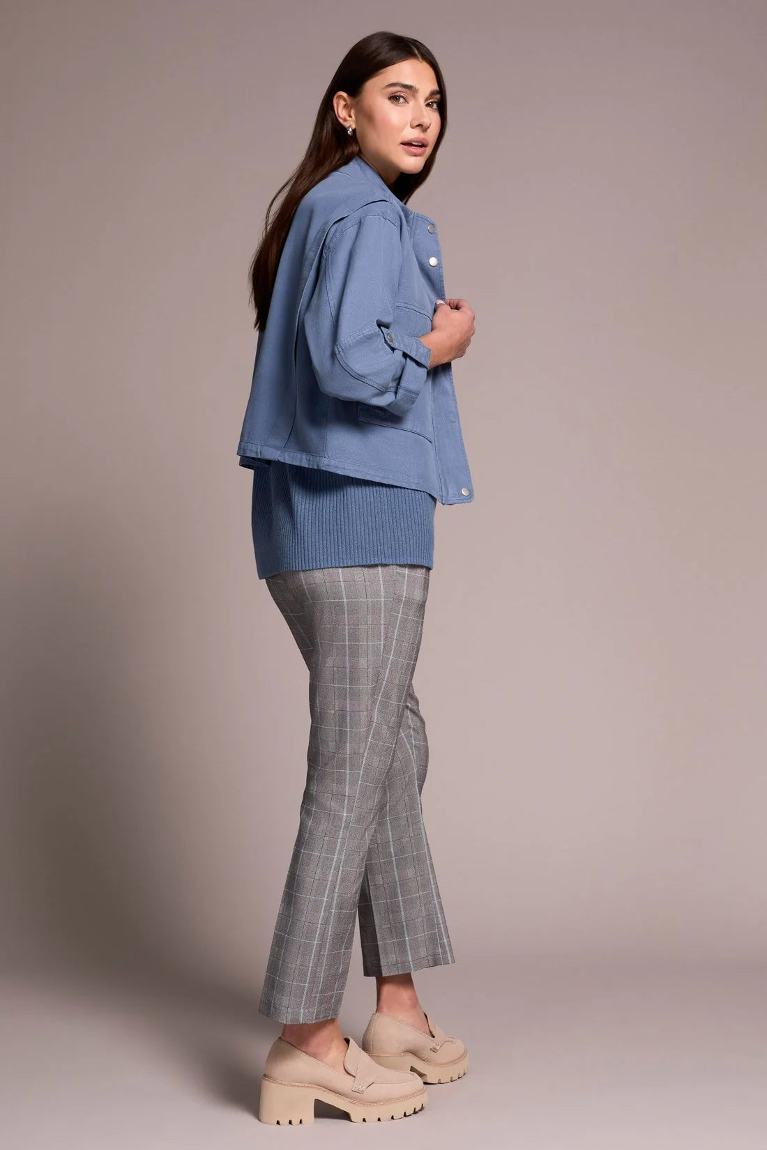Complete your look with this refined jacket, featuring a distinguished collar and sturdy double flap pockets. The hidden zipper adds a modern touch, offering a clean and polished finish. Crafted from soft, breathable twill fabric, it ensures comfort and style from morning to evening.