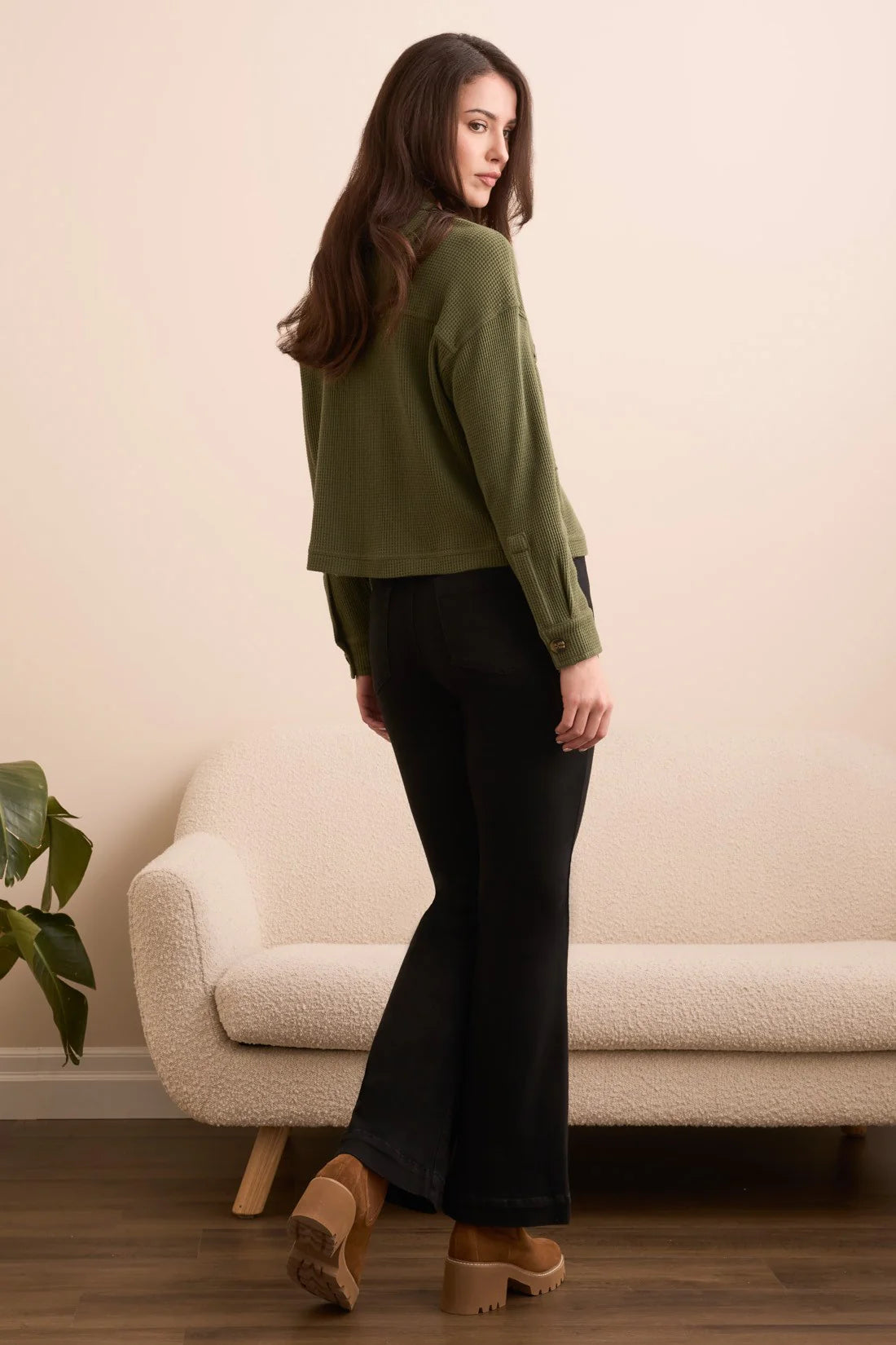 Elevate your casual look with this cropped shacket, designed for effortless layering on cooler days. Crafted from textured corduroy, it exudes a refined retro charm, while the oversized patch pockets enhance its relaxed yet stylish appeal. A classic collar completes the look, adding a touch of sophistication to its laid-back vibe.